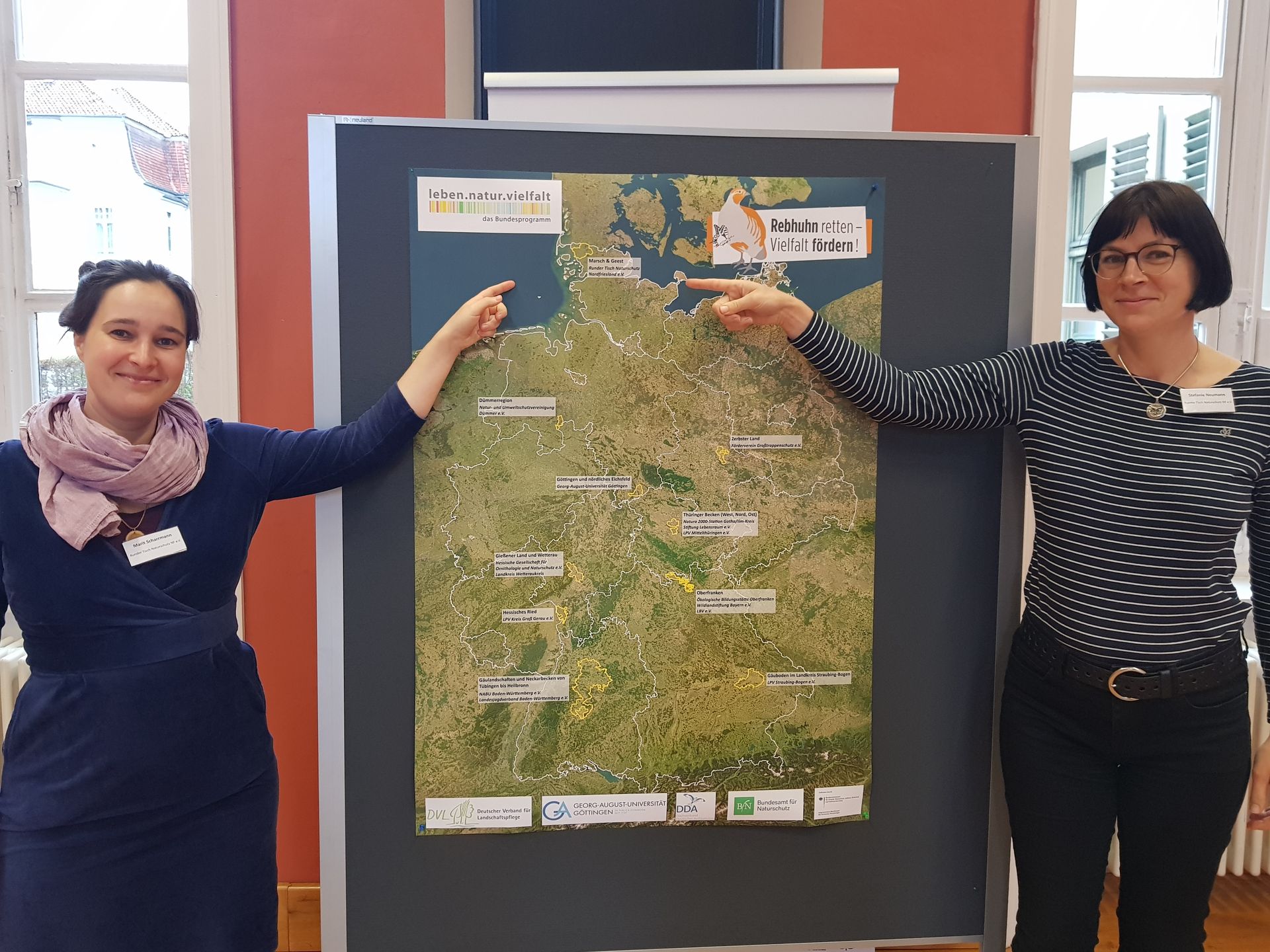 Auszug aus der Pressemitteilung vom 11.10.23: Der Deutsche Verband für Landschaftspflege (DVL), der Dachverband Deutscher Avifaunisten (DDA) sowie die Abteilung für Naturschutzbiologie der Georg-August-Universität Göttingen fordern, die Artenvielfalt in den Fokus der Agrarpolitik zu nehmen, um dem Rebhuhn unter die Flügel zu greifen. Bei der Auftaktveranstaltung des Projektes „Rebhuhn retten – Vielfalt fördern!“ im Bundesprogramm Biologische Vielfalt stellten sich das Verbundprojekt, seine 15 Projektpartner und die Projektgebiete vor: Seit 1980 ist die Zahl der Rebhühner in Deutschland um 85 % zurückgegangen. Das Rebhuhn lebt überwiegend auf landwirtschaftlich genutzten Flächen, die aber den Bedürfnissen des Vogels immer weniger gerecht werden. Das Projekt “Rebhuhn retten – Vielfalt fördern!” setzt sich jetzt eine Trendumkehr als Ziel, unter anderem weil das Rebhuhn als Leitart für eine artenreiche Agrarlandschaft steht. Es will 10 Projektgebieten auf 7 % der landwirtschaftlichen Nutzfläche Brachen, Blühflächen, Feldraine und Hecken als Lebensraum schaffen. Im Durchschnitt ist jedes der zehn ausgewählten Projektgebiete 200 km² groß. Das entspricht einer Fläche, die größer ist als das Saarland. Die Projektgebiete sind verteilt auf acht Bundesländer und verschiedene Naturräume. Umgesetzt werden sollen die Maßnahmen gemeinsam mit den Akteur*innen vor Ort: mit Landwirt*innen, Jäger*innen und Naturschützer*innen. Die Existenzbedrohung des Rebhuhns steht stellvertretend für die Herausforderungen, die in der Kulturlandschaft gemeistert werden müssen, um die biologische Vielfalt zu fördern: mehr Strukturreichtum, mehr Biotopvernetzung, mehr Brachflächen. „Das Rebhuhn fordert uns jetzt zum Handeln zugunsten der Artenvielfalt auf! Unser wichtigster Partner ist dabei die Landwirtschaft.“ unterstrich Ute Grothey, stellvertretende Vorsitzende des DVL, in ihrem Grußwort zur Auftaktveranstaltung am 11. Oktober 2023 in Göttingen. Mit der Auftaktveranstaltung, die Akteur*innen im Rebhuhnschutz eine Plattform zum Austausch bot, begann für das Projekt die sechsjährige Laufzeit. Mehr Artenvielfalt durch Rebhuhnschutz Wissenschaftliche Untersuchungen der Universität Göttingen zeigen, dass sich Maßnahmen für den Rebhuhnschutz auch positiv auf zahlreiche andere Tiere der Agrarlandschaft auswirken. Ziel des Projekts ist somit nicht nur die Hilfe für das Rebhuhn. Die Projektpartner wollen auch einen wesentlichen Beitrag zur Wiederherstellung und zum Erhalt der Artenvielfalt leisten. Ob das gelingt, soll ein umfangreiches Monitoring zeigen: Der Dachverband Deutscher Avifaunisten organisiert eine Erfassung der Rebhuhnbestände, sowohl in den Projektgebieten als auch außerhalb und repräsentativ für Deutschland. Diese Ergebniskontrolle liefert in den nächsten Jahren nicht nur die Grundlage für den wissenschaftlichen Nachweis der Maßnahmeneffekte, sondern etabliert langfristig ein nachhaltiges Netzwerk von Rebhuhnschützer*innen. Gemeinsame Agrarpolitik Für mehr Artenvielfalt in der Agrarlandschaft ist auch politisches Umdenken notwendig. Mit der Optimierung der Standards zu verpflichtenden Brachen in der Gemeinsamen Agrarpolitik 2023 – 2027 (GAP) konnte in einem gemeinsamen Vorprojekt ein erster Erfolg erzielt werden. Es bestehe von Seiten der Politik jedoch immer noch akuter Handlungsbedarf, meinte Dr. Eckhard Gottschalk, Projektleiter an der Georg-August-Universität Göttingen. „Die effektive Umsetzung von Agrarumweltmaßnahmen kommt nicht nur dem Rebhuhn und vielen anderen Tierarten zugute. Gerade angesichts bestehender und wachsender Flächenkonkurrenz und knapper werdenden finanziellen Mittel ist es besonders wichtig, dass keine uneffektiven Maß-nahmen in die Landschaft gebracht werden.“ Verbundprojekt schafft Synergien DVL, DDA und Universität stellen über die Projekt-Homepage einen Leitfaden, Newsletter und Fortbildungen zum Rebhuhnschutz zur Verfügung. Das Projekt möchte damit Anreize setzen, Ähnliches auch andernorts zu versuchen. Das Projekt „Rebhuhn retten – Vielfalt fördern!“ wird im Bundesprogramm Biologische Vielfalt durch das Bundesamt für Naturschutz mit Mitteln des Bundesministeriums für Umwelt, Naturschutz, nukleare Sicherheit und Verbraucherschutz gefördert.